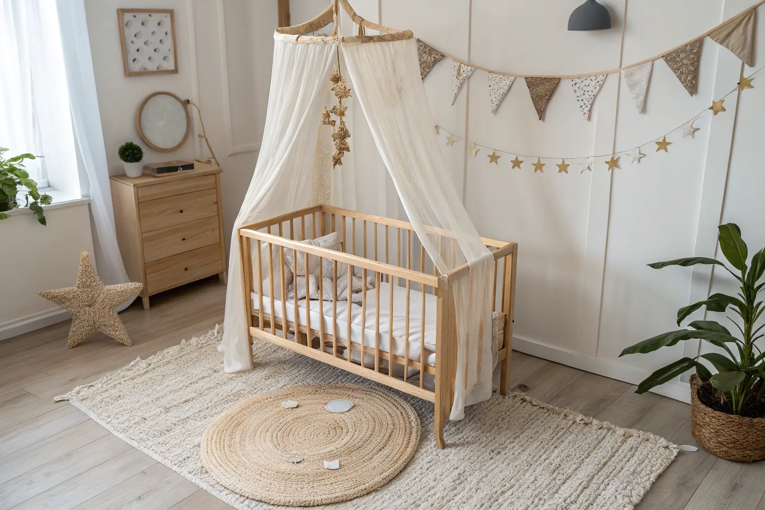 A baby crib can look instantly more cozy and styled with a few thoughtful touches—especially when you lean into warm wood tones and soft, dreamy textures. I always decorate the area around the crib while keeping the sleep space simple and safe, so it feels magical without feeling cluttered.
