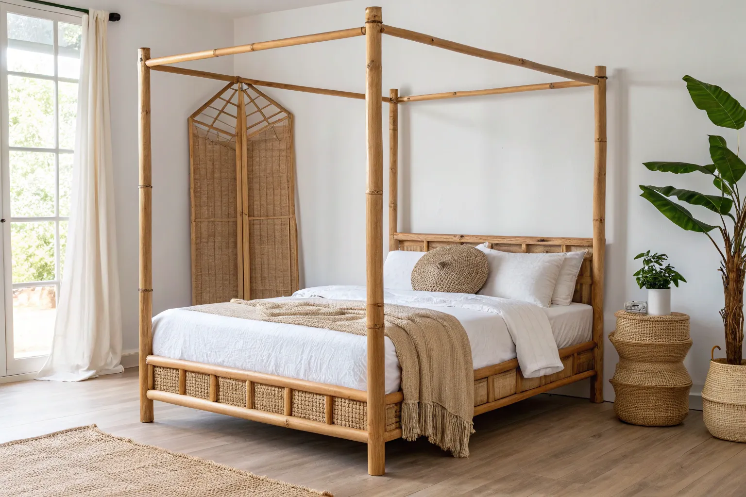 - Natural Bamboo Bed Frame: Anchor your bedroom with a sturdy, sustainable frame that brings an immediate organic, airy atmosphere to your space.