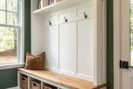 A barn door over a laundry nook makes the whole space feel intentional, even if it’s basically a closet with ambitions. I’ve installed them to hide machines, detergents, and all the “real life” stuff, and it’s wild how much calmer the room looks.