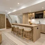 Try a tile-inset bar top by framing a tile field inside a wood border—great for tying into basement floors or a backsplash. I’ve done this when clients want pattern without committing to a full tile counter, and it photographs so well under pendant lights.