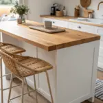 - Butcher Block Countertop: Create a seamless waterfall effect by using matching butcher block slabs for both the top and sides.