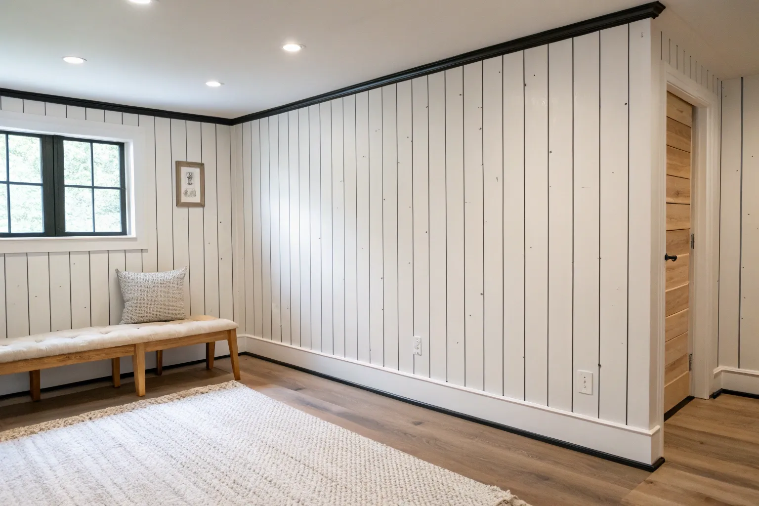 Vertical tongue-and-groove boards make a low ceiling feel taller, which is a big win on basement walls. I installed pine boards like this in a small basement hangout, and the clean seams hid a lot of wonky concrete without looking fussy.