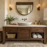• Rustic Wooden Side Table: Add rustic charm and extra storage to your bathroom with a sturdy, tiered wooden side table.