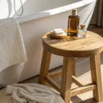 I’ve used a sturdy wooden stool as a bathtub side table more times than I can count, and it always looks cozy and intentional. I usually add felt feet and a couple coats of moisture-resistant sealer so it doesn’t get cranky in humidity.