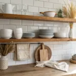 - Rustic Black Floating Shelf: Recreate this exact look with a rustic wooden shelf that adds bold contrast to white tile walls.