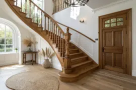 - Natural Jute Stair Runner: Add warmth and texture that perfectly contrasts with dark railings while making your stairs safer and quieter.