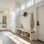 - Entryway Storage Bench: Create valuable seating and shoe storage that sits perfectly below your wainscoting for a functional drop zone.