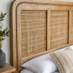 - Floating Wood Nightstand with Rattan Detail: Choose a wall-mounted bedside table to free up floor space and create a breezy, open feel in your bedroom.