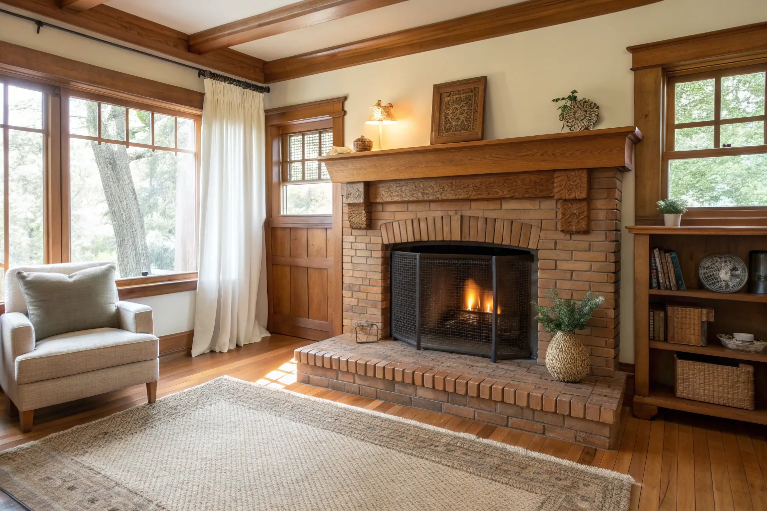 In my own bungalow-style projects, original brick plus a chunky reclaimed wood mantel always nails that timeless, cozy vibe. I like to leave the beam a little imperfect so the grain and checks feel honest, not “brand new.”