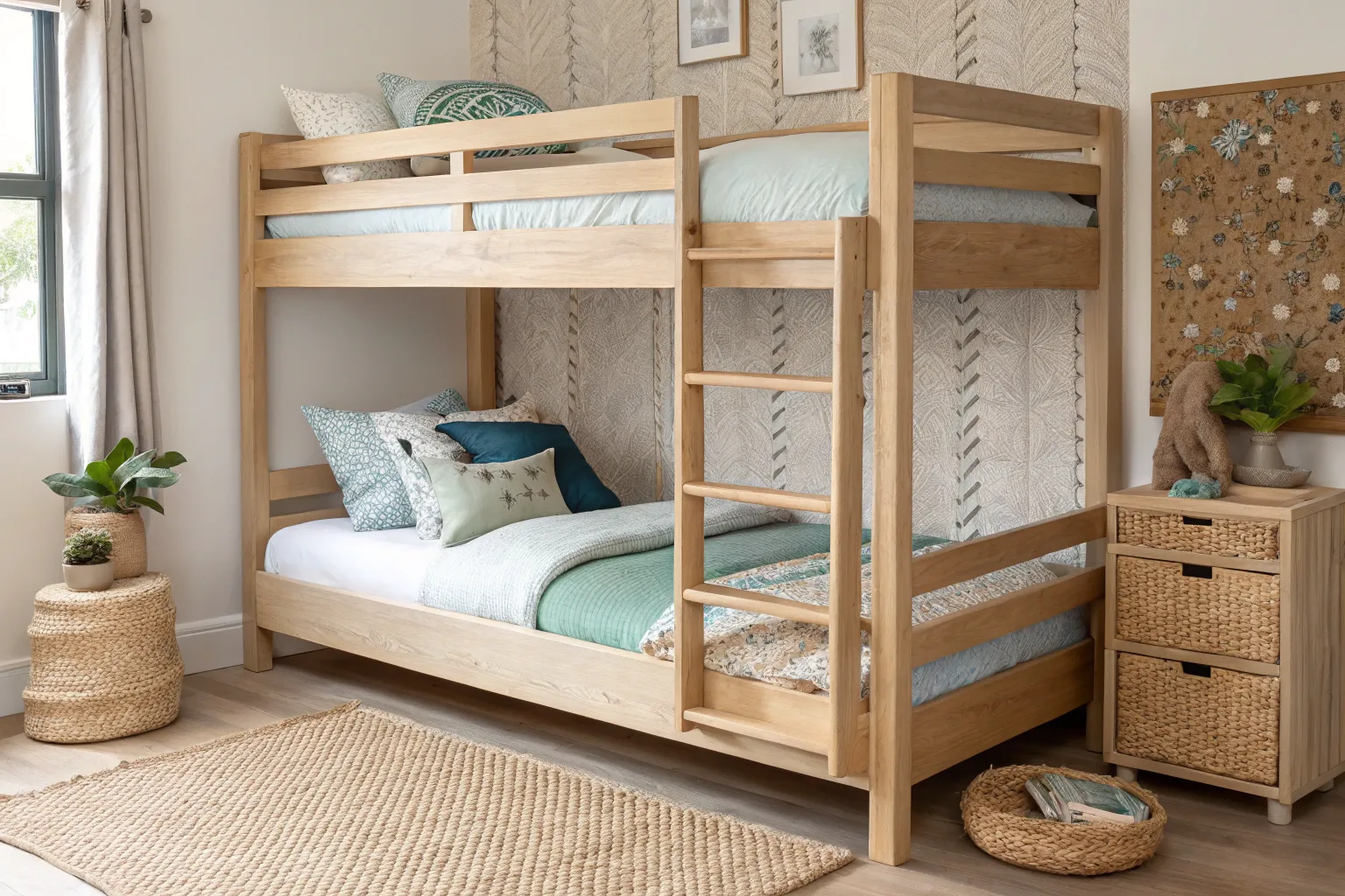 For a boy and girl sharing, I always start with a simple stacked bunk bed in natural wood because it plays nice with any colors they both like. In my shop, a clear finish is my go-to since it lets the grain do the decorating while their bedding handles the personality.
