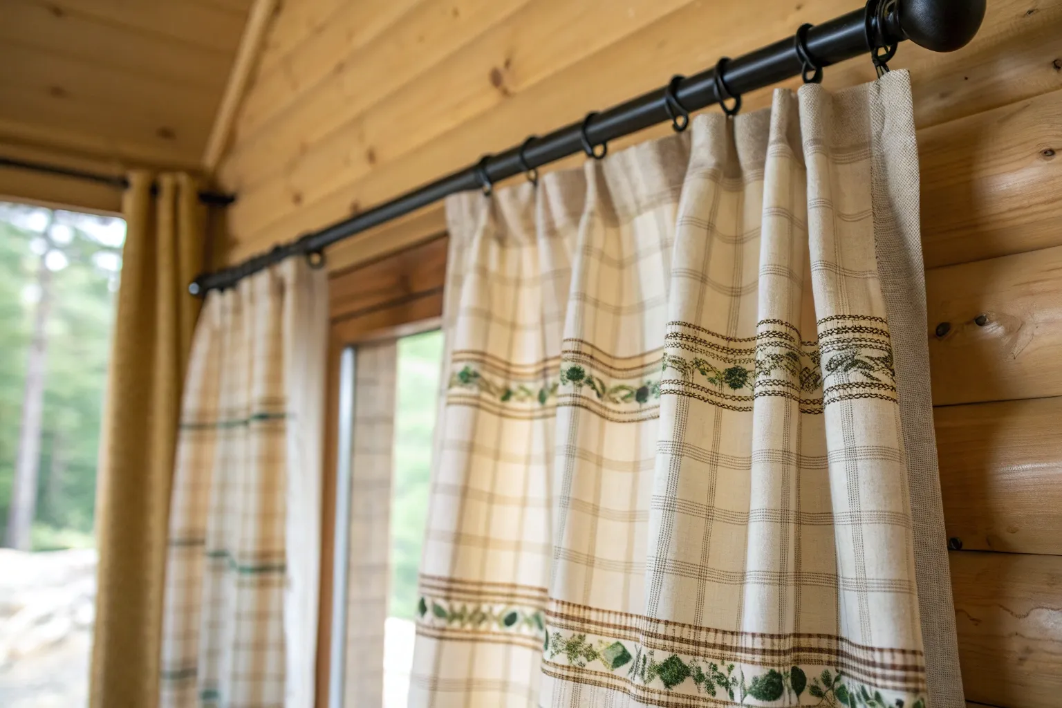 Layering sheer panels behind heavier cabin drapes gives you light control without sacrificing softness. I’ve done this in a reading nook, and being able to switch from “glowy morning” to “movie-night cozy” is so satisfying.