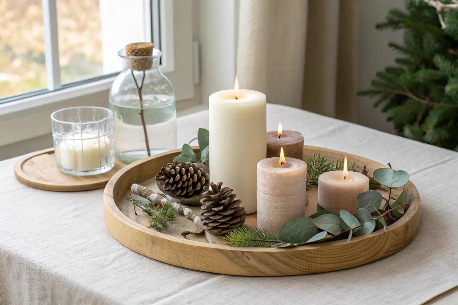 When I’m styling a candle tray in a hurry, I grab three pillar candles in slightly different heights and cluster them in the center. In my workshop, this combo never fails on a rustic wood tray because it looks intentional without trying too hard.