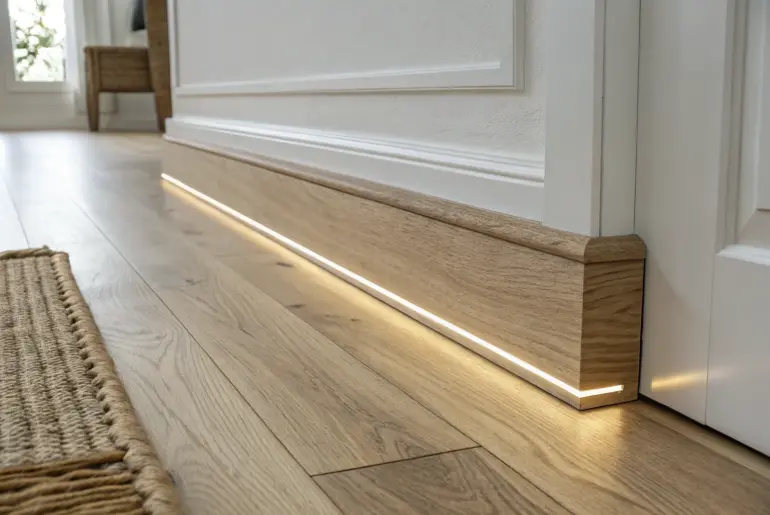 Baseboard lighting is my favorite “big impact, small footprint” upgrade because it makes a room feel calm, modern, and a little magical at night. Hallway Night Path Lighting Dim baseboard glow turns a hallway into a calming night path—warm, minimal, intentional. In my own hallway, I keep the baseboard lights super dim so they act like a nightlight pathway without waking anyone up. The soft glow along the bottom of the wall makes the whole…
