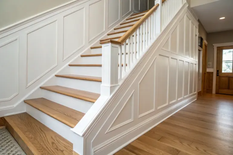 A finished staircase can turn a plain hallway into a total showpiece with just a few smart upgrades. I’ve worked on enough stair makeovers to know the magic is in the details—wood tones, clean paint lines, and a finish that can actually handle real life. Wall Paneling Along the Staircase Vertical wall paneling beside a finished staircase adds custom charm—clean, bright, and timeless. Adding wainscoting or vertical paneling beside a finished staircase makes it feel…