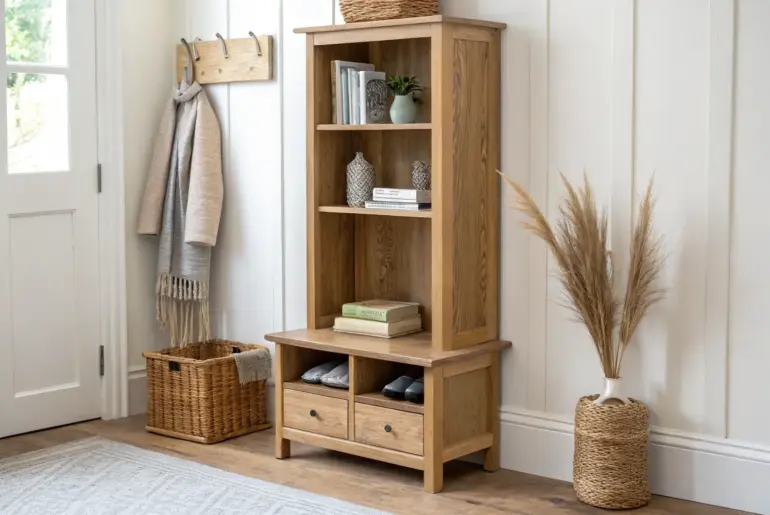 An entryway bookshelf is one of my favorite ways to turn that “drop-zone chaos” into something that looks intentional and cozy. Doorway-Surround Entryway Bookshelves Turn a tight entry into a library—built-in shelves framing the doorway, light and airy. Building bookshelves around a doorway is one of those space-maximizing moves that always gets a double-take. I’ve done this in tight entryways where every inch matters, and the extra vertical storage is incredible. A few relevant products:…