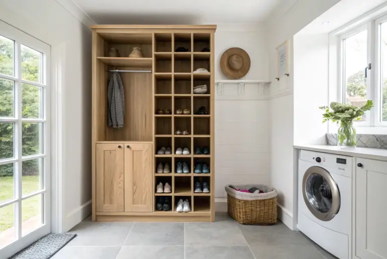 Laundry rooms pull double duty in real life, and shoes are usually the first thing to pile up and make the whole space feel messy. Fold-Down Shoe Wall That Doubles as a Folding Station Fold-down shoe wall that flips into a sleek folding station—smart storage with warm wood charm. For a real wow moment, I’ve made a fold-down panel with shallow shoe ledges on one side, and when you lift it up it becomes a…