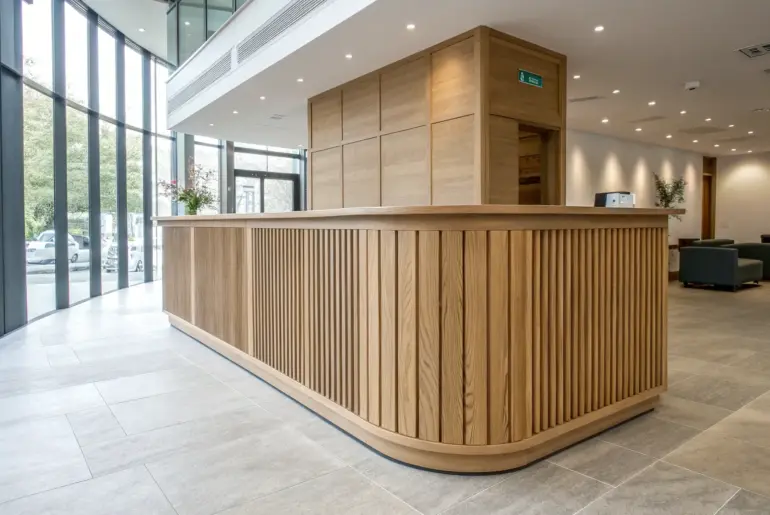 Your reception area sets the tone in the first five seconds, so the furniture has to feel both friendly and put-together. Two Cozy Lounge Chairs Two matching oak lounge chairs turn a reception corner into an intentional, cozy welcome. Two matching lounge chairs in the waiting area are the easiest “looks intentional” move, especially with a small table between them. I’ve rearranged enough reception corners to know this setup keeps traffic flowing better than one…