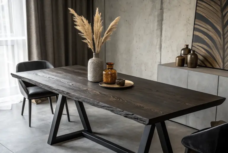 A masculine dining room is all about that sweet spot between rugged and refined—think bold wood grain, darker tones, and a little metal edge. These ideas are the exact mix I reach for in my own builds when I want the room to feel grounded, confident, and lived-in. Black Steel Trestle Base Reclaimed oak meets a black steel trestle base—clean, bold, and beautifully masculine. For a masculine dining room, swapping delicate legs for a black…
