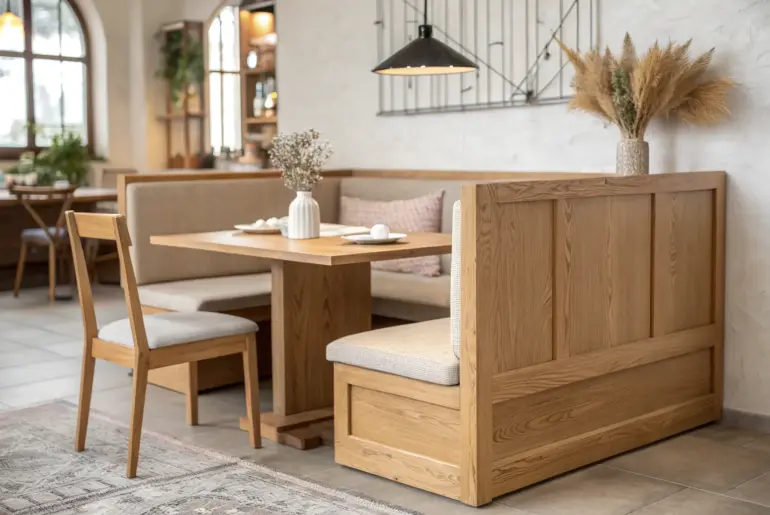 Restaurant booths do so much more than fill seats—they shape the flow, the mood, and that cozy “stay a while” feeling. Light-Wood Minimal Booth Lines Light oak booth lines that keep small restaurants airy—clean edges, calm tones, crafted detail. A clean light-wood booth with simple lines can make a small restaurant feel airy instead of crowded, and I’ve used this approach when the space needed to breathe. I stick to smooth edges and calm tones…