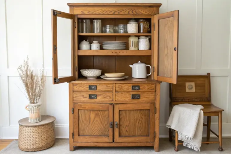 A Hoosier cabinet has this magic way of turning everyday kitchen stuff into a story you can actually see. Greenery That Softens the Lines A trailing plant on top brings soft, fresh contrast to the Hoosier cabinet’s crisp lines. A little greenery goes a long way on a Hoosier cabinet, especially a trailing plant on the top or a small potted herb on the counter. I keep it simple because the cabinet already has so…