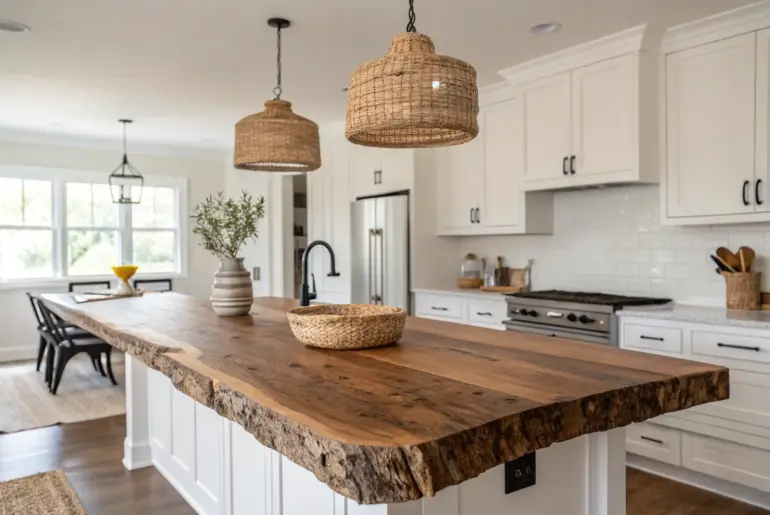 A live edge kitchen island is one of those pieces that instantly makes a kitchen feel warmer, richer, and more alive. Split Slab With Center Feature Split live-edge slabs with a glass “river” center—minimal, sculptural, and strikingly warm. Try a two-piece live edge kitchen island top with a deliberate center gap filled with glass, stone, or resin for a dramatic “river” moment. I’ve mocked this up in my workshop, and that negative space makes the…