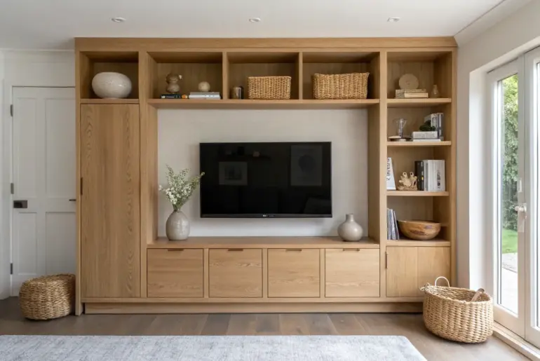 A great TV unit can make your screen feel like it actually belongs in the room instead of just sitting there like a giant black rectangle. Rotating TV Unit for Open Layouts A rotating oak TV unit that pivots effortlessly—one beautiful screen, two seating zones. A rotating TV unit is perfect when one screen needs to serve two seating areas, and it feels like such a clever upgrade. I helped a friend build a pivoting…