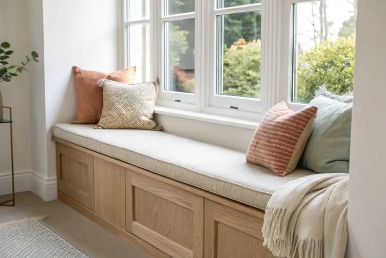 A good corner sitting area can turn that awkward “what do I do with this?” spot into the coziest place in the house. I’m always amazed how a little wood, a soft seat, and the right lighting can make a corner feel like a real destination. Built-In Corner Banquette A built-in oak corner banquette with lift-up storage—minimal, cozy, and space-smart. A built-in corner bench is my favorite way to squeeze extra seating into a small…