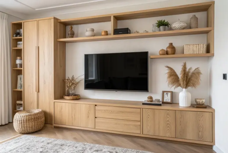 A TV wall looks so much better when it feels like part of a bigger, intentional display instead of a lonely screen on drywall. Over the years in my shop, I’ve built and styled a ton of TV walls with shelves, and these are the ideas that always make the whole room click. Classic Built-In Surround Classic built-in surround: warm oak cabinets and airy shelves frame the TV and hide clutter. When I build a…