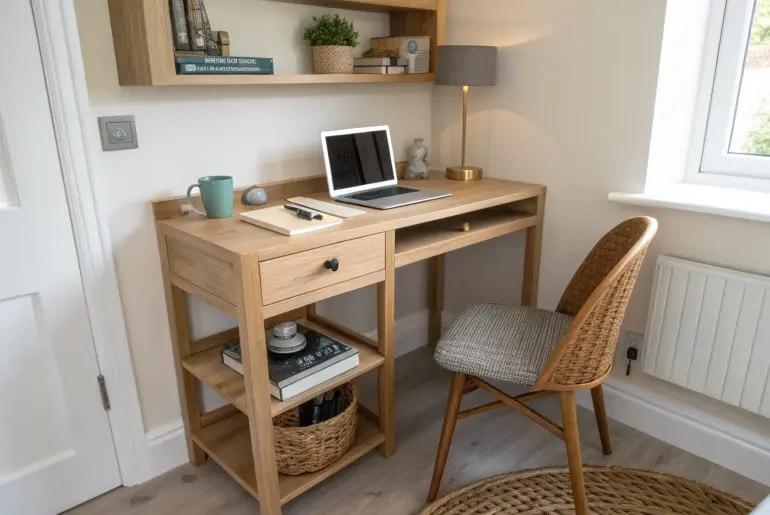 Small spaces can still hold a seriously functional workspace—you just need a desk that knows how to behave. I’ve built and remodeled a lot of tiny setups, and the best small desk ideas always feel light, tidy, and surprisingly “meant to be” in the room. Pull-Out Drawer Desk A hidden pull-out drawer desk in light oak—minimal, clever, and beautifully crafted. A pull-out desk hidden in cabinetry is one of those ideas that feels fancy but…