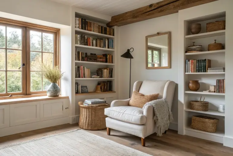 A good corner library turns that awkward angle in your room into the coziest little “room within a room.” I’ve built a bunch of these over the years, and the magic is always the same: smart book storage plus a spot you actually want to sink into. Monochrome Painted Corner Library Monochrome corner library: shelves blend into the wall so the books add all the texture. Painting your corner library the same color as the…