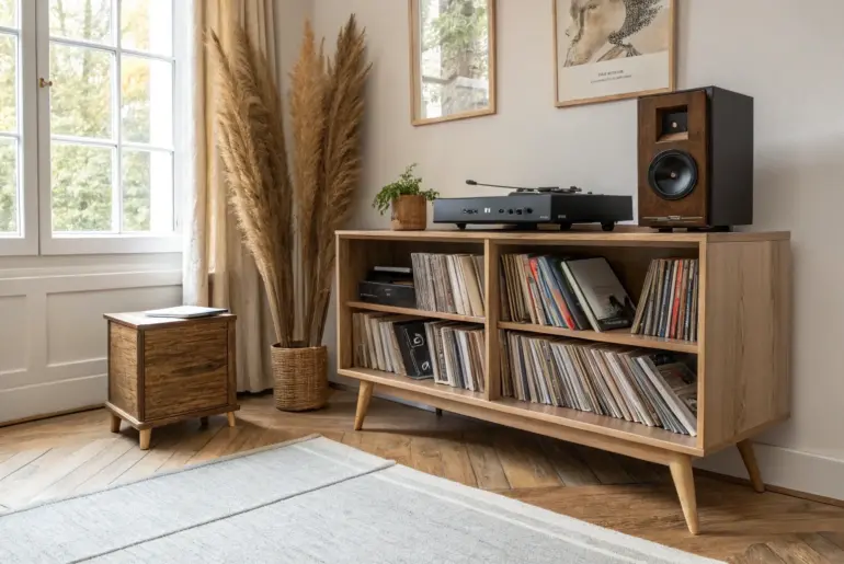 Good vinyl record storage keeps your collection safe, easy to browse, and cute enough to be part of your decor. I’ve built (and rebuilt) my own setups more times than I can count, and these ideas are the ones that actually make living with vinyl records feel effortless. Built-In Listening Corner Wall Built-in oak record wall with a contrasting back panel—vinyl spines pop in a cozy nook. I once turned an awkward nook into a…