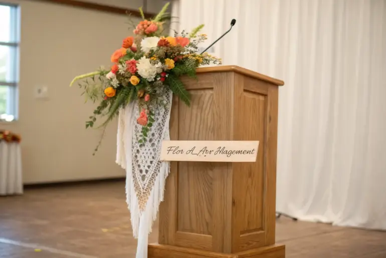 A plain podium can feel a little stiff, but dressing it up turns it into a real focal point that frames the speaker beautifully. I’ve decorated plenty of wooden podiums in my shop and at events, and the best results always come from simple layers that read well from a distance. Moss and Twig Wrap for a Woodland Podium Moment A woodland podium moment: oak simplicity wrapped in moss and twigs for storybook texture. For…