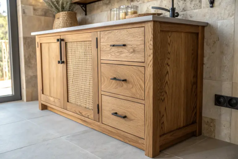 A good boho nightstand has that relaxed, collected-over-time vibe—warm wood, woven texture, and just enough character to feel personal. Rattan Door With Open Shelf Light oak nightstand with a woven rattan door and open shelf—boho texture, tidy storage. A nightstand with a rattan door and an open shelf gives you that boho texture up top and practical storage down low. I’ve made the shelf height basket-friendly, and it’s honestly the easiest way to hide bedside…