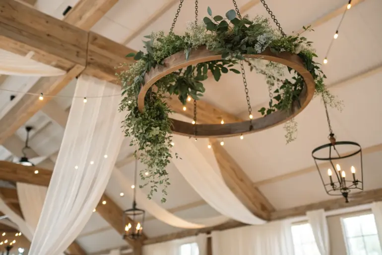 Modern barn weddings are my favorite because you get all that honest wood character—big beams, wide planks, and raw texture—then soften it with clean, romantic details. Suspended Greenery “Meadow” Over the Tables A floating greenery meadow—clean lines, soft light, and handcrafted barn romance overhead. One time I rigged a floating greenery installation between beams, and it felt like dining under a little indoor forest. Use repeating lines and consistent height so it looks designed, not…