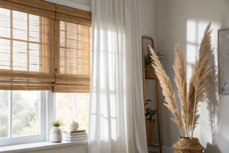 Modern farmhouse window treatments are all about that sweet spot between cozy, rustic texture and clean, modern lines. I’m always chasing soft light, simple neutrals, and just enough natural material to make the wood tones in the room feel extra warm. Woven Wood Shades With White Curtains Earthy woven wood shade + bright white linen panels for an airy modern farmhouse window. This is my go-to modern farmhouse combo because woven wood shades add earthy…