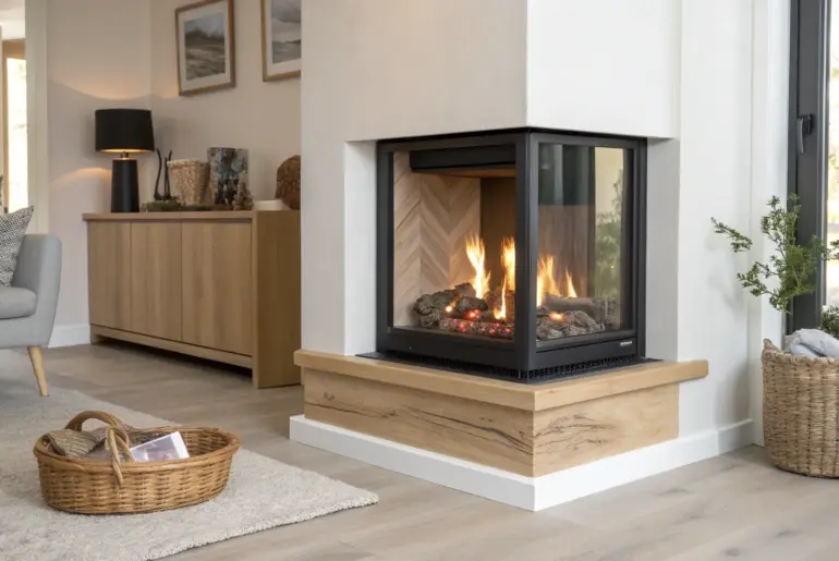 An L-shaped fireplace is one of my favorite ways to make a corner feel intentional, not like an afterthought. Two-Sided Glass Corner Insert Two-sided glass corner insert: L-shaped flames glowing to both sofa and dining spaces. A two-sided glass setup is my go-to when you want the flames visible from the sofa side and the dining side at the same time. I helped a friend plan one like this, and it’s unreal how it makes…