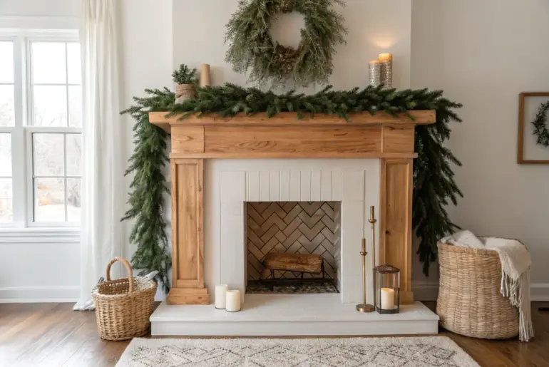 A good mantle garland can make your whole living room feel pulled together in about ten minutes. I love how one lush drape of greenery softens all that brick, stone, or wood and instantly turns the fireplace into the cozy focal point. Garland Framing a Large Mirror Emerald garland hugs a handcrafted oak mirror—minimal mantel magic with cozy contrast. Try running the mantle garland up and around a big mirror so it looks like the…