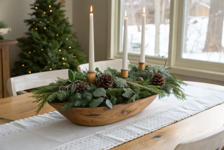 Winter tables don’t have to feel bare just because the holidays are over—this is the season made for warm light, natural textures, and a little rustic charm. Evergreen Garland Table Runner Evergreen garland runner on raw oak—simple, lush winter table decor with a handmade feel. My go-to winter move is a simple evergreen garland running straight down the table because it instantly looks lush against raw wood. I usually tuck in a few cedar tips…