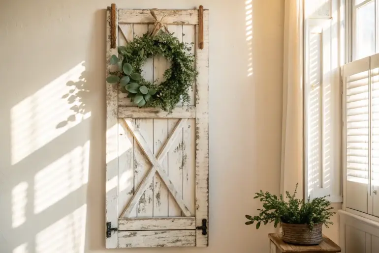 Old wooden shutters have that perfect mix of texture, history, and cozy charm that makes a wall feel instantly styled. I’m always grabbing them for quick upgrades because they’re easy to customize and they play so nicely with rustic farmhouse decor. Classic Shutters With a Greenery Wreath A classic wood shutter topped with a full greenery wreath and linen bow—simple, soft, and elegant. My go-to shutter wall decor is a single shutter with a full…