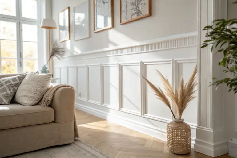 A good wall border trim is like a necklace for your room—it finishes the look and adds that extra bit of depth. Classic Chair Rail Border Classic chair rail border with two-tone paint—simple trim that instantly makes walls feel custom. A simple chair rail running around the room instantly breaks up big blank walls, and I’ve used it a ton to make builder-basic spaces feel custom. My favorite trick is pairing it with two-tone paint…