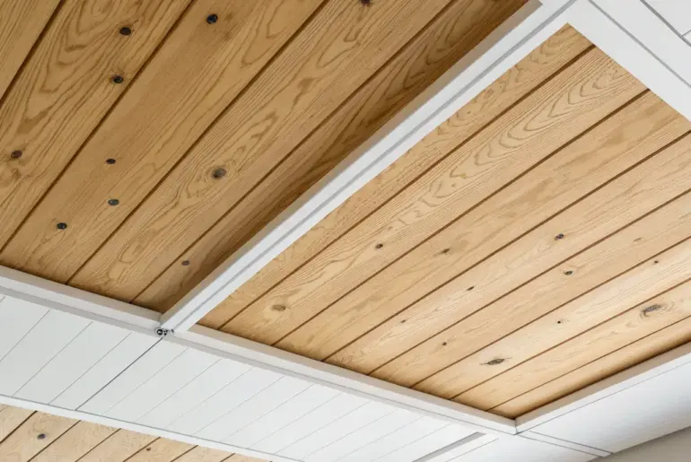 A wood drop ceiling is my favorite way to warm up a room fast while still keeping easy access to wiring, pipes, and ductwork. Here are my go-to looks—starting with the classics and ending with a few “how is that even a drop ceiling?” ideas I’ve actually built in my own shop projects. Acoustic Felt Backing Behind Wood Slats Warm oak slats on black acoustic felt—sleek contrast that softens echo and elevates ceilings. For echo-prone…