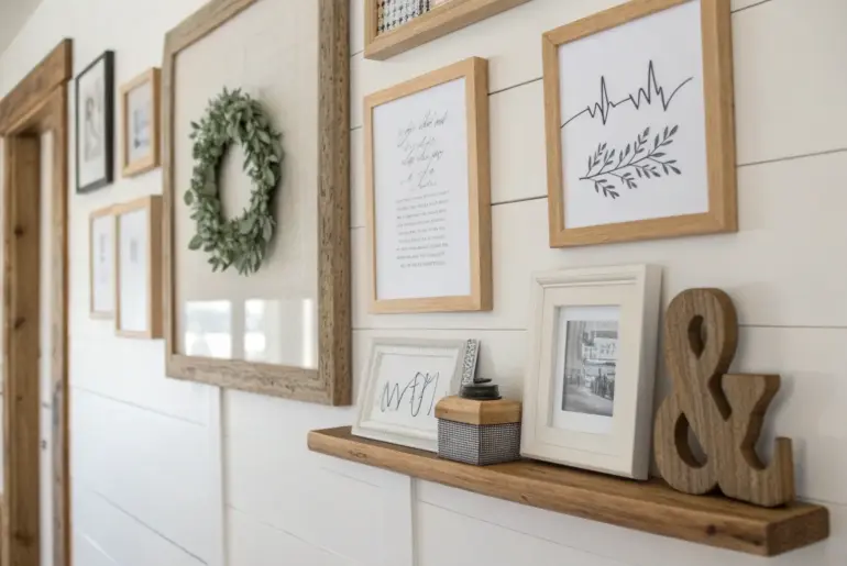 A good farmhouse wall collage feels like a cozy story told in wood, metal, greenery, and a few meaningful photos. I build mine the same way I build furniture—start with a strong anchor piece, then layer in texture and imperfect, lived-in charm. Asymmetrical Cluster Above a Console Asymmetrical farmhouse gallery wall: one bold piece left, clustered frames right—perfect balance. My favorite farmhouse wall collage formula is one larger piece on the left, then a tighter…