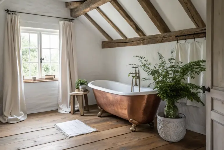 An English cottage bathroom is all about that cozy, lived-in charm—soft colors, vintage touches, and plenty of natural texture. Checkerboard Tile Underfoot Checkerboard tile meets warm oak—an English cottage bathroom look with quiet, handmade charm. A checkerboard tile floor is classic cottage and somehow always looks “right,” even with older finishes. I’ve designed around this look by warming it up with a wood vanity and woven storage, and it instantly reads English cottage bathroom. Explore…