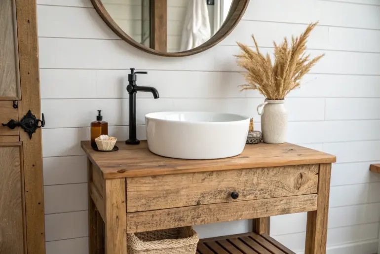 Rustic bathroom decor is all about warming up a practical space with weathered wood, honest textures, and a few pieces that look like they’ve lived a good life. In my own builds, the magic always comes from mixing reclaimed timber with simple metal accents so the room feels cozy, not themed. Reclaimed Wood Vanity Base Reclaimed wood vanity base with rustic knots—sealed matte for a calm farmhouse bathroom. I’ve built a reclaimed wood vanity from…