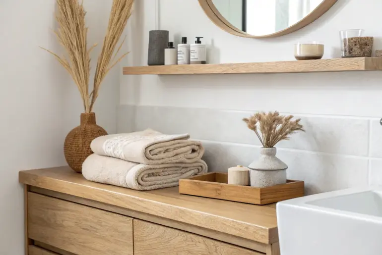 A good set of bathroom floating shelves can turn the tiniest bathroom into something that feels calm, warm, and pulled together. Two Shelves Beside the Vanity Mirror Two slim floating shelves beside the mirror—pretty storage for daily essentials, zero clutter. I love mounting two slim floating shelves beside the mirror so your daily stuff is right there without crowding the counter. In my own setup, I keep glass canisters for cotton pads and swabs on…