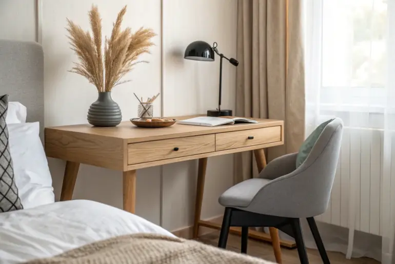 A bedroom desk can be a total game-changer when it feels calm, cozy, and doesn’t take over your sleep space. These ideas are all about space-saving layouts and warm wood details so your bedroom workspace feels like it belongs. Built-In Alcove Desk A walnut built-in alcove desk that turns an awkward niche into a warm, custom workspace. If your bedroom has a bump-out or awkward wall niche, I’ve found a simple built-in desk makes it…