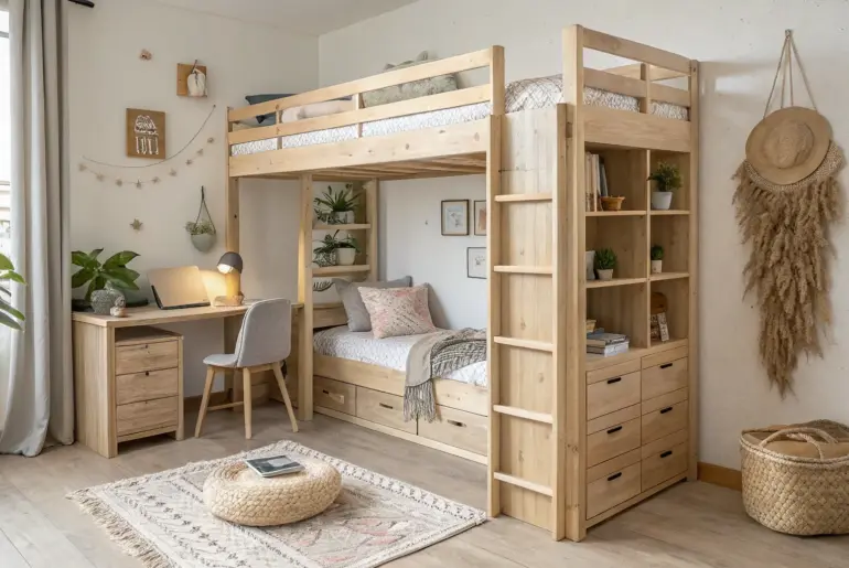 A bunk bed can make a dorm room feel tight fast, but it’s also the easiest way to steal back precious floor space. I’ve helped a lot of students turn that stacked setup into a cozy, functional little home with a few smart wood-friendly tweaks. Classic Study Nook Under the Bunk Clamp-on pine ledge + under-bunk desk for a built-in-style study nook that feels calm and cozy. My go-to bunk bed dorm room move is…