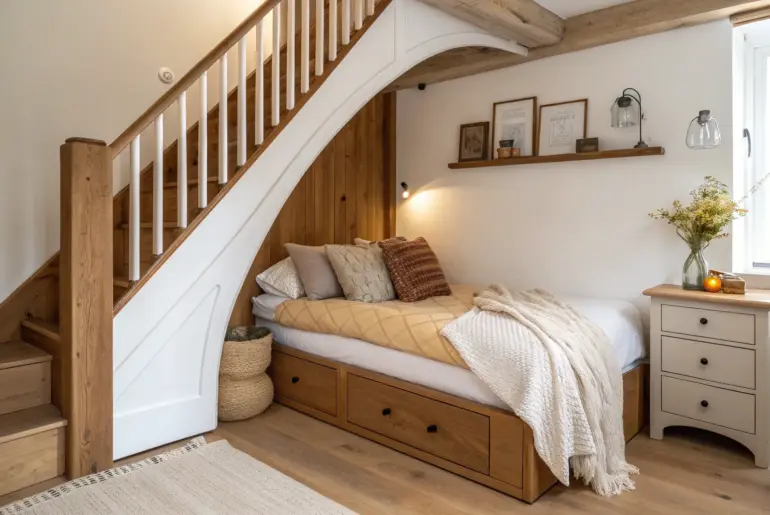 That awkward triangle under the stairs can turn into the coziest little sleep spot in the whole house if you build it with intention. Enclosed Cubby Bed With Door A snug under-stairs cubby bed with a simple door—tongue-and-groove warmth, tiny-room cozy. If you want max cozy, I’ve built a closed-in under-stairs bed with a simple door or curtain so it feels like a tiny room. I like using tongue-and-groove boards inside because that snug wood…