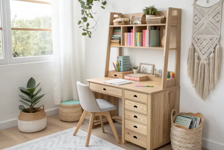 A kids study room works best when it feels easy to use, easy to clean up, and still has a little personality. Two-Seat Sibling Study Station A calm two-seat oak study desk with a simple divider—siblings share space without the squabbles. A shared kids study room setup with one long wood top and two chairs keeps siblings close but not on top of each other. I’ve added a small divider shelf in the middle before,…