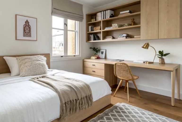 When your bedroom is tiny but your to-do list isn’t, the trick is making a workspace that feels like it belongs there. I’ve built and tested a bunch of small bedroom office setups in real rooms, and these ideas keep the space calm, cozy, and actually usable. Match Wood Tones for Cohesion Match desk and bed wood tones for a cohesive small bedroom office that feels calm and built-in. I’ve noticed a small bedroom office…